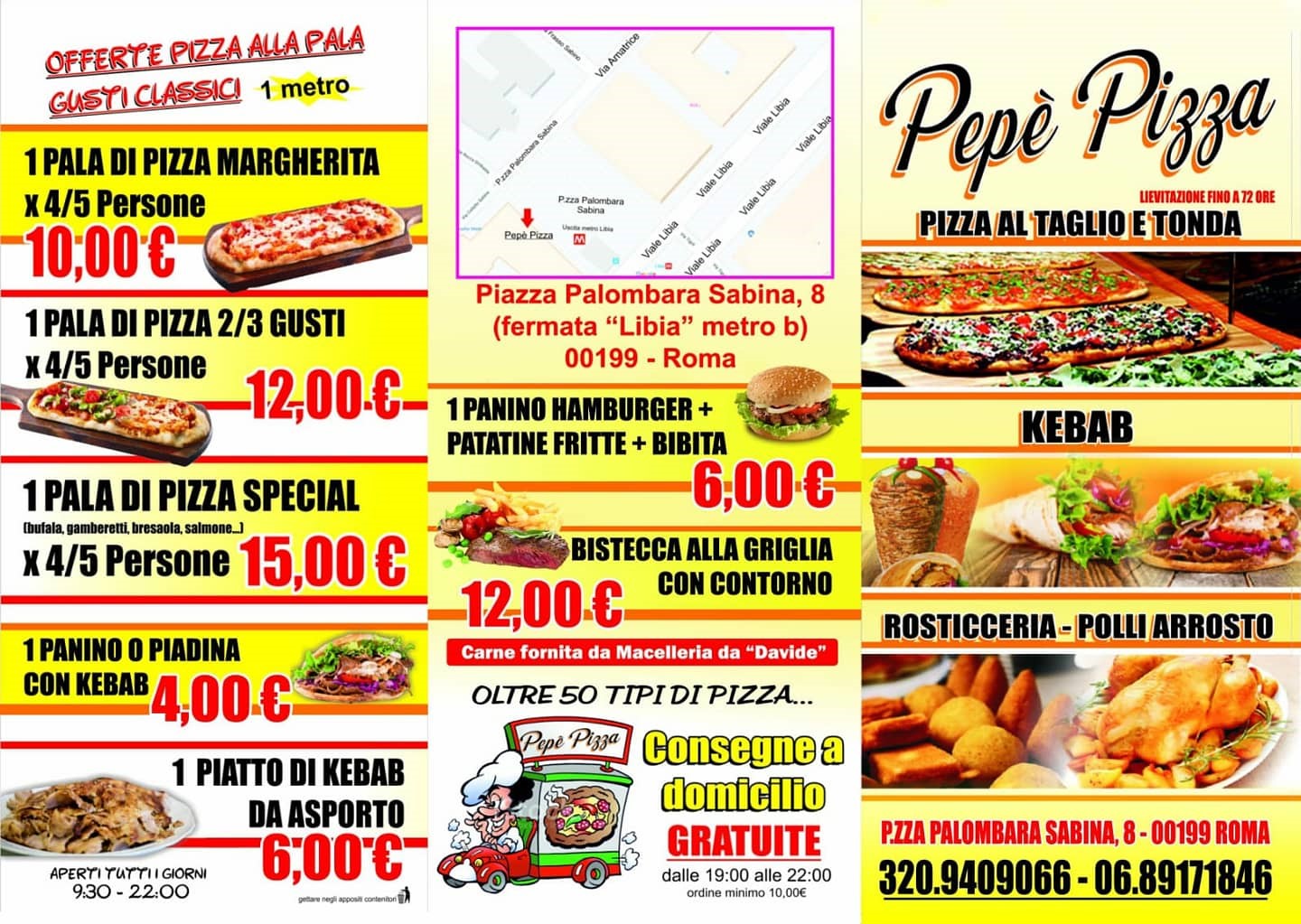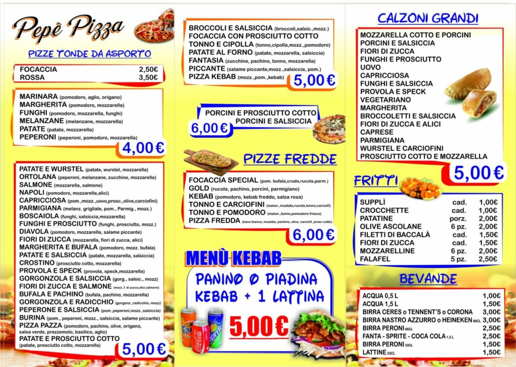 Se sei un amante del kebab, non perdere il nostro, a base di carne di vitello e tacchino. La pizzeria Pepè di Roma si distingue per la qualità dei suoi prodotti che ben si coniuga con prezzi concorrenziali. Se desideri assaporare le nostre prelibatezze sempre e ovunque ti diamo la possibilità di ordinarle chiamando Uber eat e Just eat.