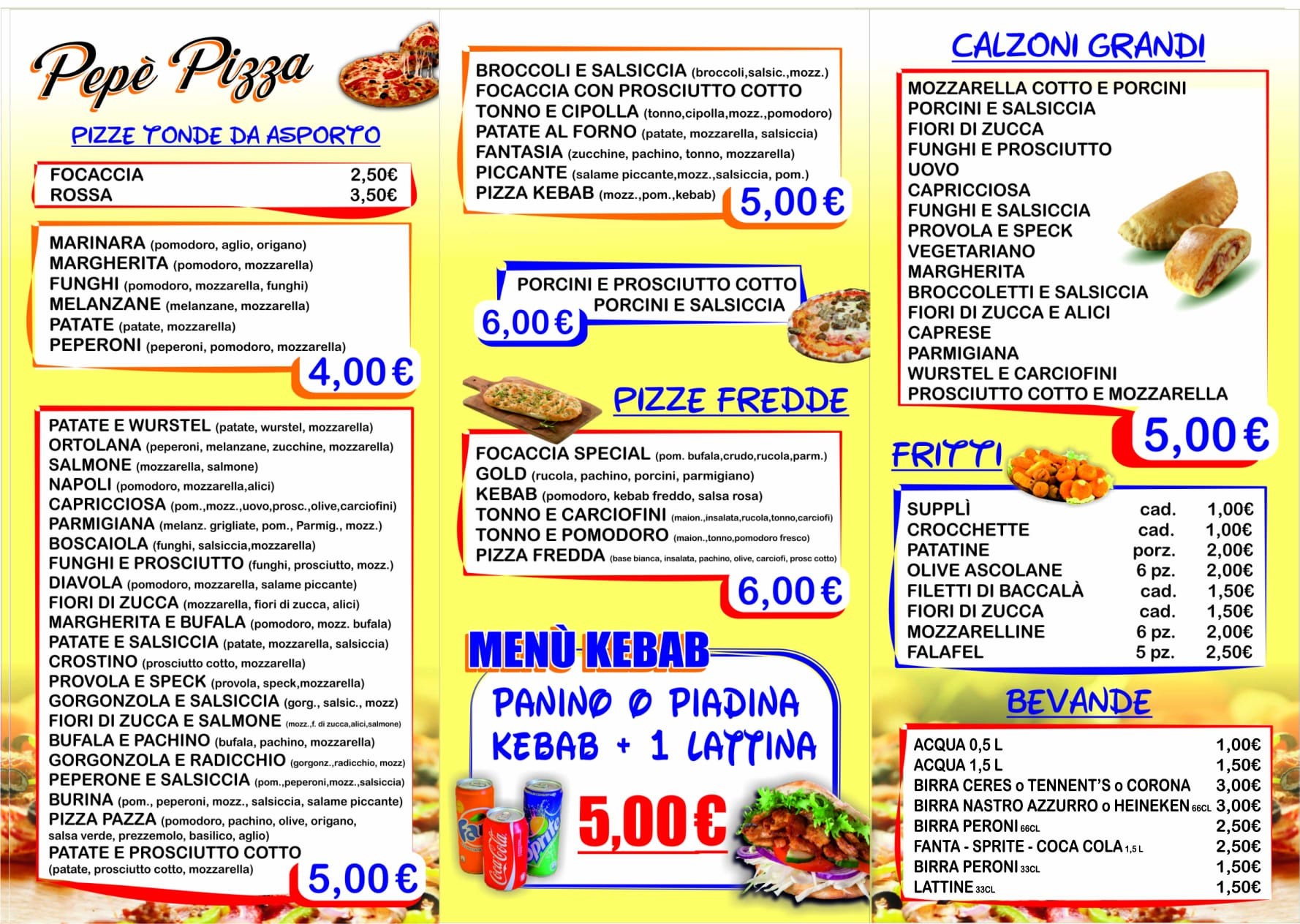 Pizze, fritti, kebab preparati ogni giorno per assicurartene la freschezza
